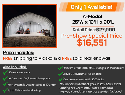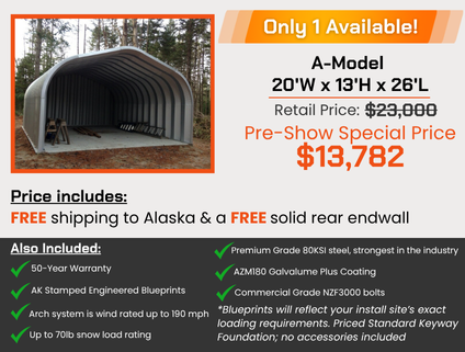SteelMaster is heading to the Alaska Farm & Garden Show, and we’re offering exclusive pre-show discounts. Get a head start — lock in your deal before the show and secure your AK-certified steel building at a special price.